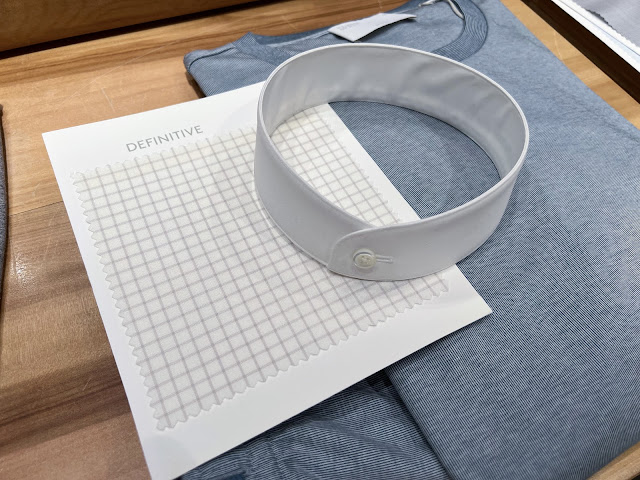 While the somewhat restrictive MTO programme looks like one crafted mainly with sensibility, pragmatically @shirtingfantasy thinks it also makes some sense. In a way, an angled, mitred cuff for lower count fabric is more durable - a high count fabric would mean rapidly-fraying collar and cuff edges. On the other hand, 1-mm edge stitching on the collar and cuffs could present technical stitching difficulties problems when making shirts with very high count (e.g. 300/2) cotton.